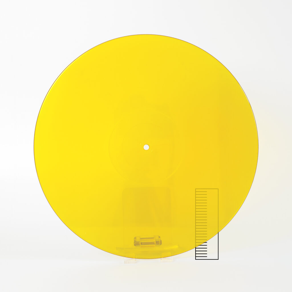 They have the same shape profile as pressed records, with a raised centre label area and bevelled edges. These new vinyl options are made from a bespoke blend of recycled plastic, and all of the pigments are organic. The blank records are pressed at a plant in France that runs on renewable energy. They are however, not just blank pressed records from a pressing plant; they are not injection moulded PET, they are the result of more than 4-years of R&D to find a bespoke blend of plastics suitable for lathe cutting. They lie flat and have an exceptionally smooth surface. You can learn more about them in our FAQ